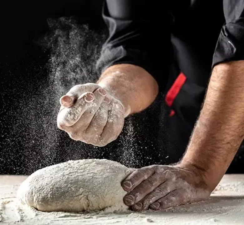Notre pâte est faite maison à partir de farine de blé BIO de la région et boulée à la main.